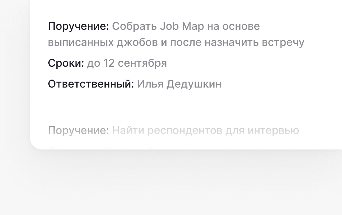 За пару секунд сервис проанализирует аудио и выдаст список задач с указанием ответственных и сроков исполнения