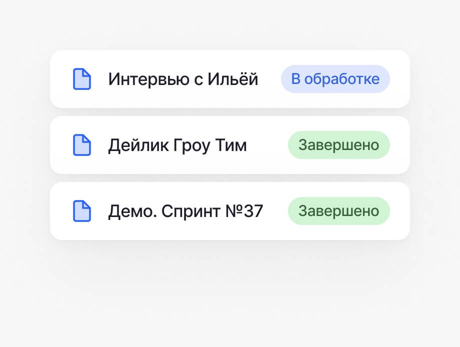 Сервису нужно 10−15% времени от длительности записи, чтобы перевести ваше аудио. Когда файл будет готов, в личном кабинете статус «В обработке» сменится на «Завершено», и на e-mail придет уведомление